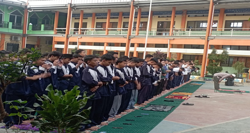 Sebagai penutup rangkaian kegiatan, para siswa kemudian bersiap untuk shalat Jum’at berjamaah yang dilaksanakan di lapangan indoor madrasah. Persiapan dilakukan secara tertib dan penuh kesadaran spiritual, menjadikan momen ini sebagai bagian dari pembelajaran ibadah dan tata cara pelaksanaan shalat Jumat yang baik dan benar.