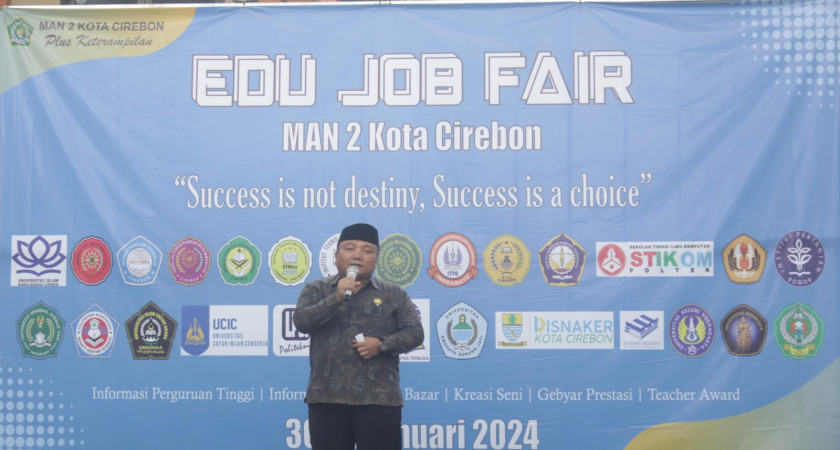 MAN 2 Kota Cirebon - "Edu Job Fair" menjadi hajat bagi MAN 2 Kota Cirebon. Di mana dalam acara ini, madrasah memilliki momen untuk bersosialisasi dengan khalayak umum sekaligus sebagai ajang para peserta didik mengenal dunia perkuliahan baik negeri maupun swasta. "Edu Job Fair" telah berjalan untuk yang kedua kalinya di MAN 2 Kota Cirebon. Hal ini pasti berhubungan dengan banyaknya inovasi acara yang dirancang oleh tim "Edu Job Fair" 2024 yang di ketuai oleh Aaf Fatkhatul Ifqoh, S. Sos dengan tema "Success is not destiny, Success is a choice."